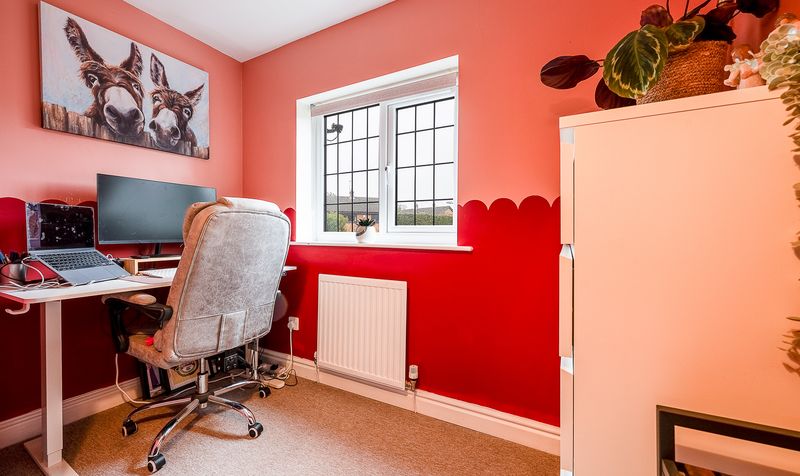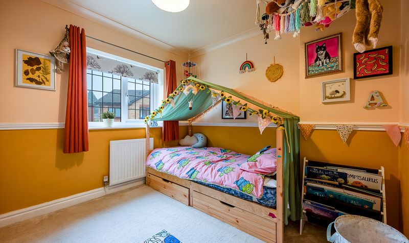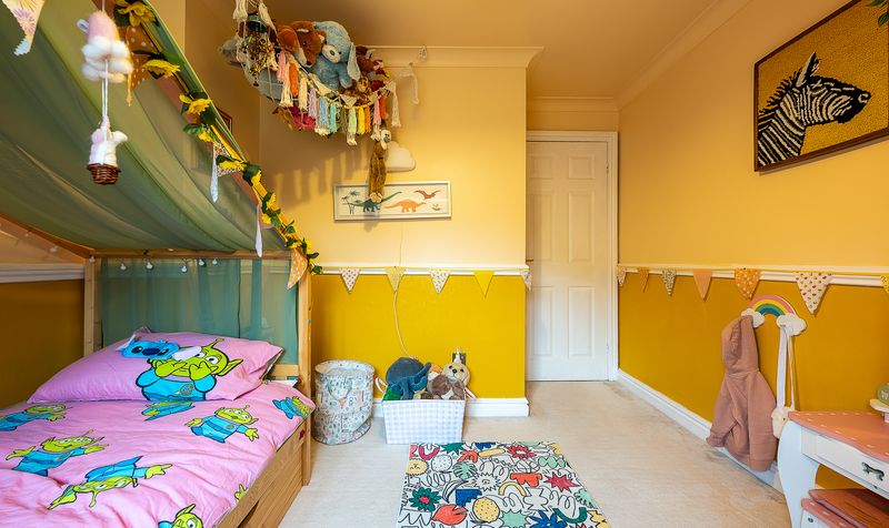 The second bedroom is another well-proportioned double, thoughtfully decorated and ideal for guests or growing children. The third bedroom is currently arranged as a charming child’s room, complete with playful décor and ample floor space, but would equally work well as a nursery or home office.