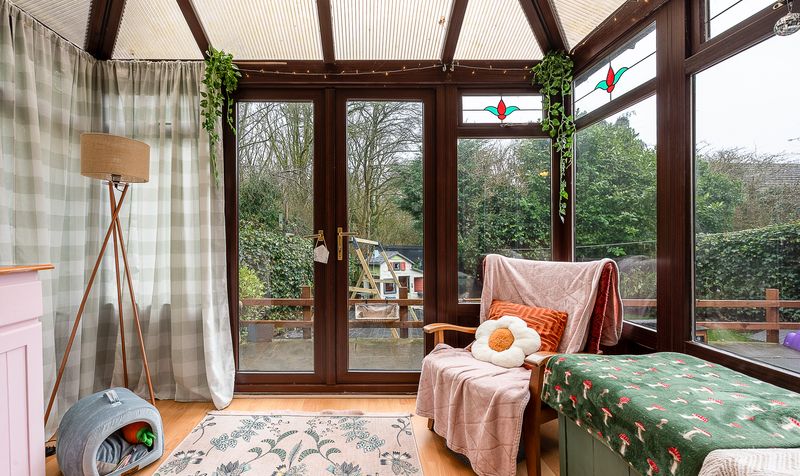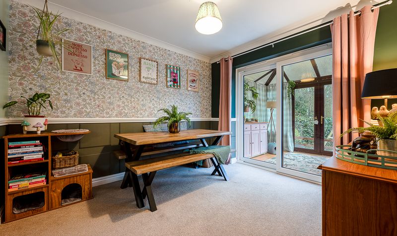 The dining room enjoys views over the rear garden and benefits from sliding patio doors leading directly into the conservatory. This additional reception space is flooded with light thanks to its wraparound glazing and pitched roof, providing the perfect spot to relax with a book, enjoy morning coffee or create a play space overlooking the garden.