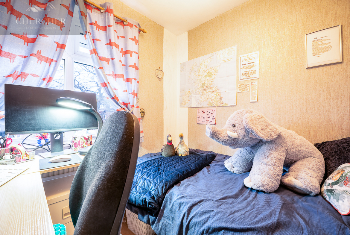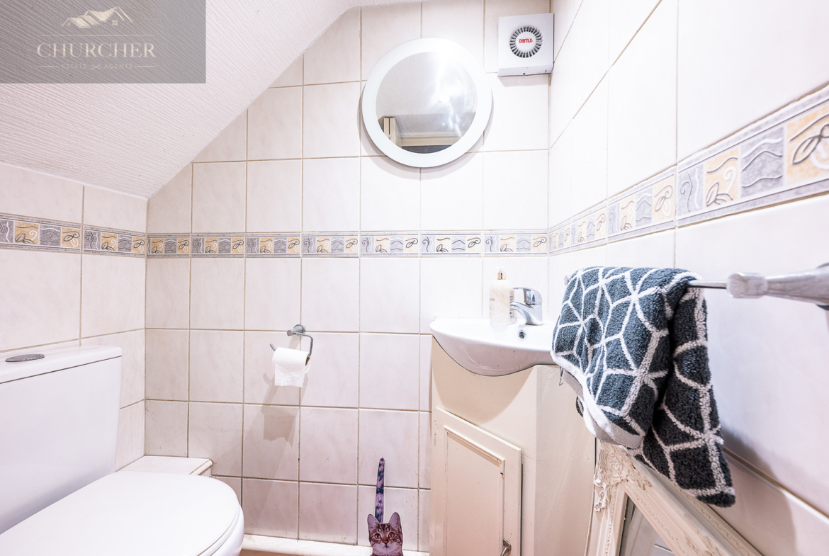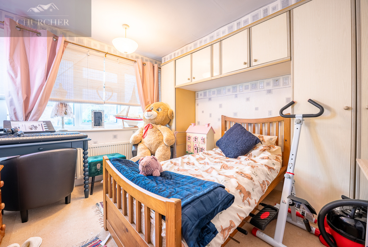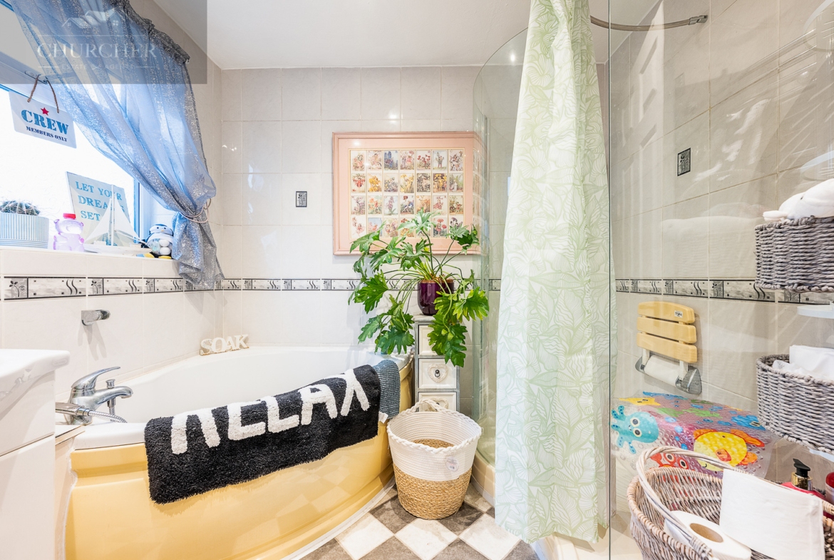 To the first floor are two double bedrooms and a single bedroom, all host to a range of fitted cabinets providing ample storage space. The bathroom has the benefit of a large corner bath with a separate spacious walk-in shower. The landing has a fully installed drop down metal loft ladder for easy access to the partially boarded loft space, which benefits from a power/ lighting supply.