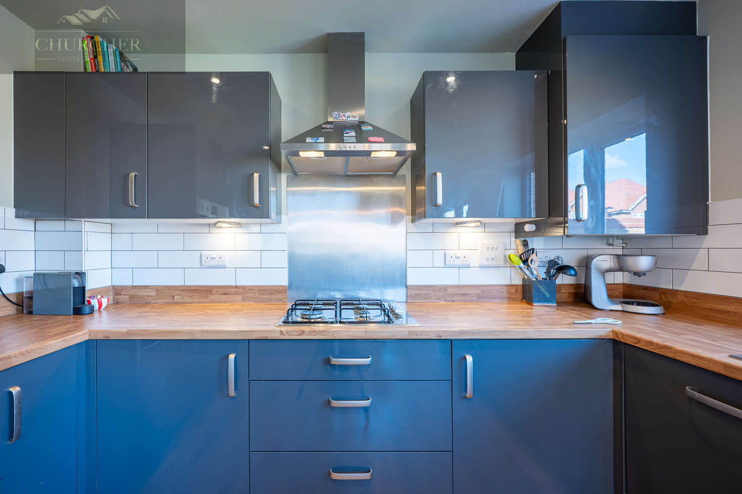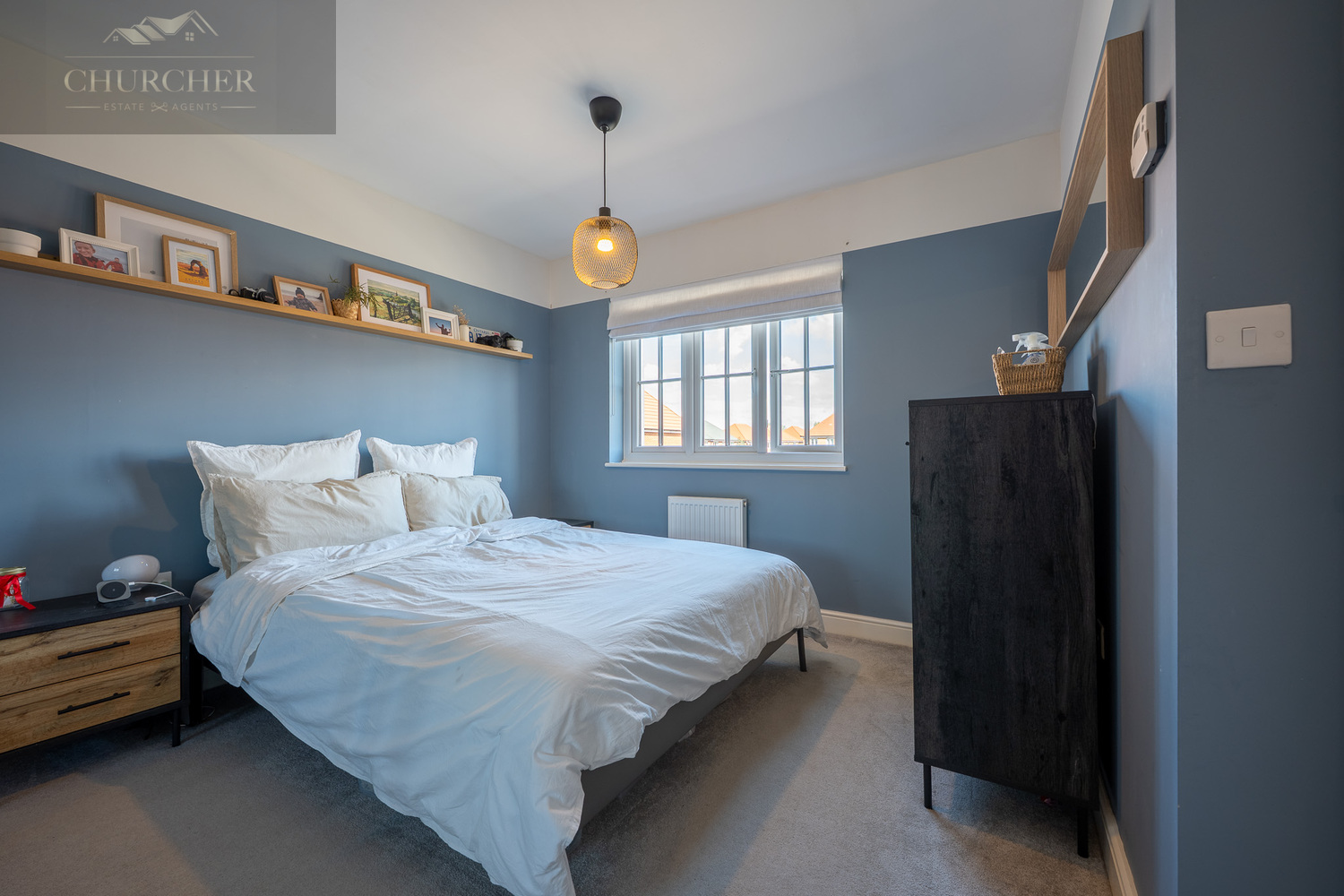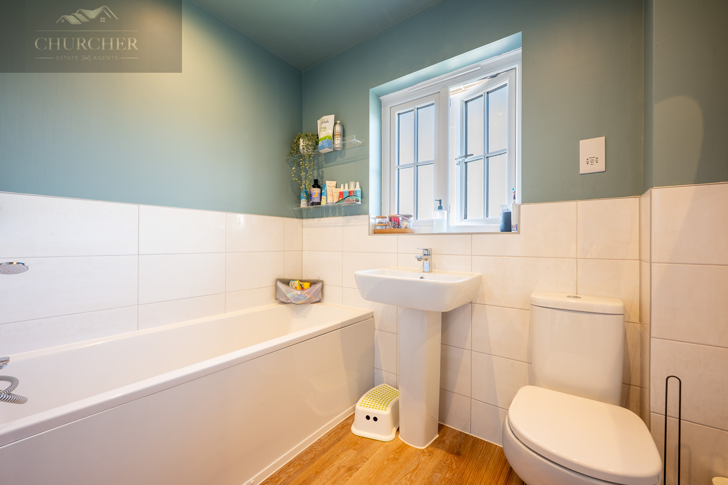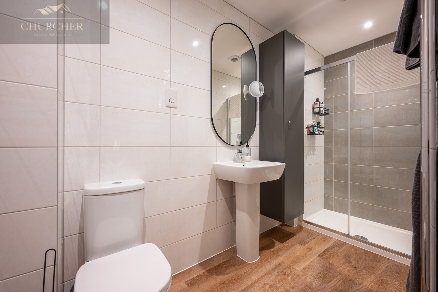 Upstairs, the property offers three generously sized bedrooms. The main bedroom benefits from fitted wardrobes and a sleek en-suite shower room, while the further two bedrooms are beautifully presented and share a stylish family bathroom with a modern finish.