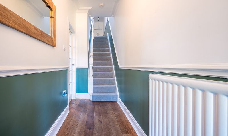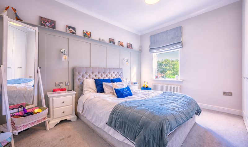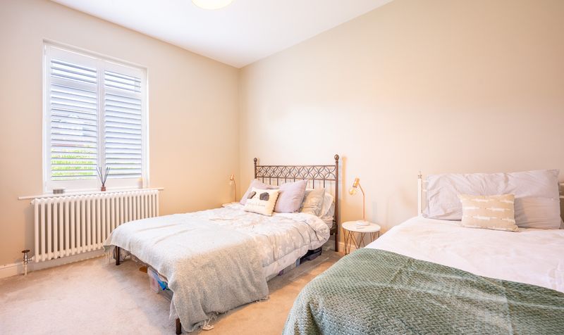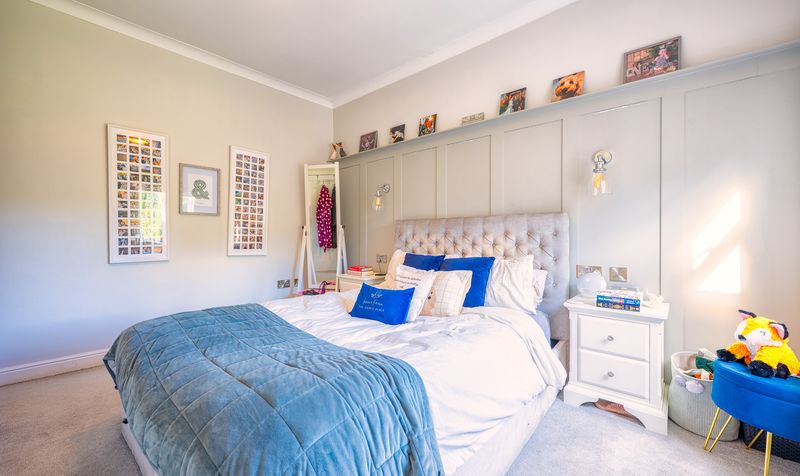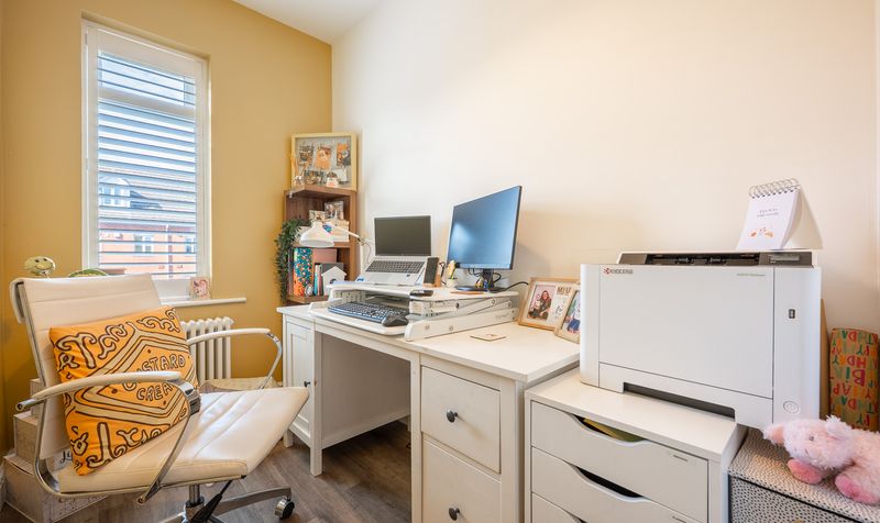 Upstairs, the property offers four well-proportioned bedrooms. The main bedroom is a spacious retreat, finished in soft tones and filled with natural light, providing a calm and restful space. The second double bedroom, located in the middle of the house, comes complete with fitted wardrobes, making it an ideal guest room or older child’s room. The third bedroom is another comfortable double, offering flexibility as a nursery or hobby room. The fourth bedroom, positioned at the front of the house, is currently arranged as a home office, but would also work well as a single bedroom. Together, the bedrooms provide excellent versatility, ensuring the home can adapt to the changing needs of family life. In addition, a fully boarded loft space offers valuable additional storage.