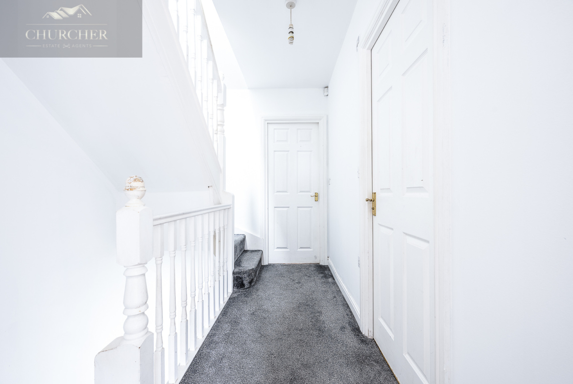 The first floor offers two excellent-sized bedrooms, both bright and neutrally decorated, making them adaptable for a variety of needs. These rooms are well suited as children’s bedrooms, guest rooms or home office spaces, each benefiting from good proportions and flexibility in layout. Also located on this floor is the family bathroom, which is fitted with a modern white suite comprising a panelled bath with shower over, wash basin and WC. The room is finished with complementary tiling and benefits from natural light, creating a clean and practical space for everyday use.