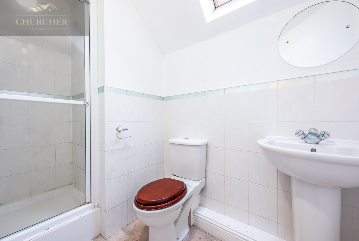 Occupying the entire second floor, the main bedroom provides a private and peaceful retreat. This generously sized room offers excellent floor space along with built-in wardrobes and additional storage areas, making it both comfortable and functional. The en-suite shower room is fitted with a shower enclosure, wash basin and WC, completing this level and enhancing the sense of privacy away from the main living areas.