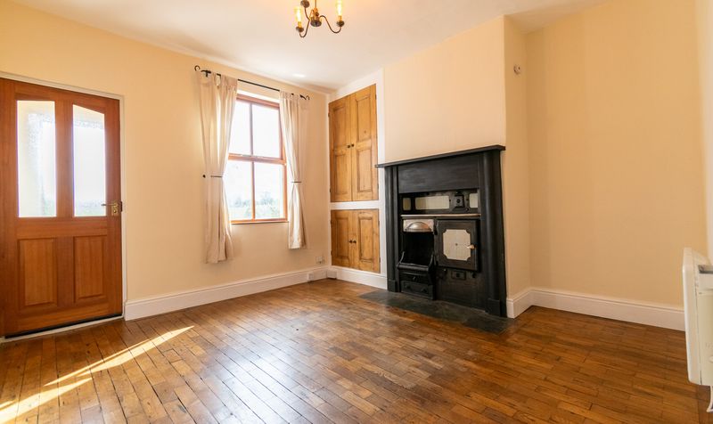 Upon entering through a convenient porch you are welcomed into an inviting lounge. This charming space is rich in character, boasting original parquet flooring, built-in wooden cabinetry, and a striking cast iron range-style fireplace adding timeless charm. A central window overlooks the front garden, and stunning views of the canal and surrounding fields.