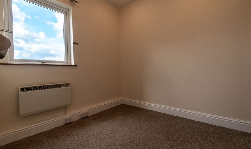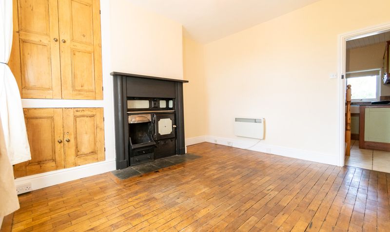 Located upstairs are two bedrooms, the front room being a generous double with views over lush countryside and a feature cast iron fireplace. Just off the landing is a built-in wardrobe space. The second single bedroom would make a great home office or guest room, complete with built in wardrobe space.