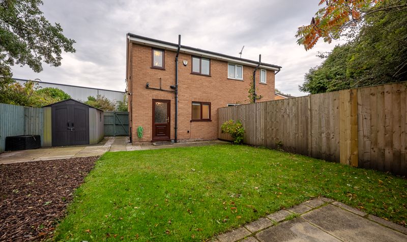 Externally, the property enjoys a lovely rear garden-private, enclosed, and perfect for families. A paved patio offers the ideal spot for outdoor dining, leading onto a neat lawn bordered by timber fencing and mature planting. To the front, a gravel driveway provides ample off-road parking, and the home sits neatly within a quiet cul-de-sac surrounded by greenery.