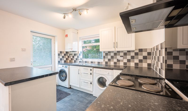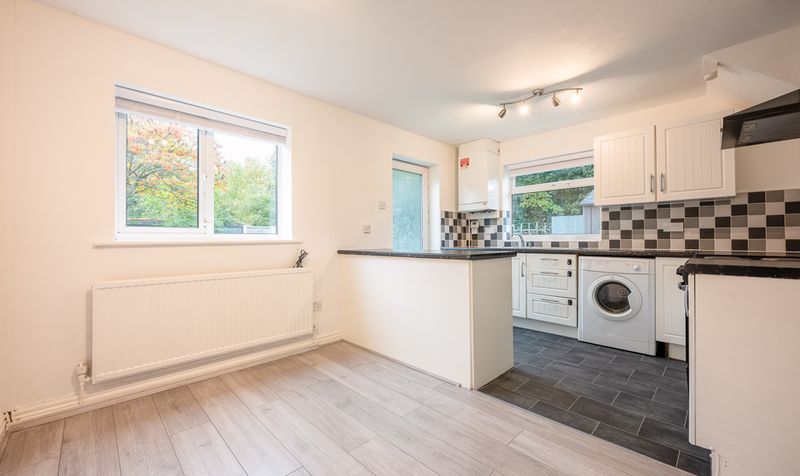 To the rear of the home lies the modern kitchen and dining area-an ideal hub for everyday living. Fitted with shaker-style cabinetry, contrasting work surfaces, and tiled splashbacks, the kitchen offers both functionality and charm. There is ample room for appliances and a practical breakfast bar that creates a sociable space for casual dining, while there is also space for a dining table, perfect for hosting family dinners and entertaining guests. A rear door opens directly to the garden, allowing easy indoor-outdoor flow, ideal for summer gatherings or relaxed evenings at home.