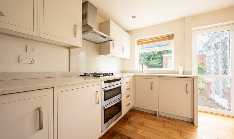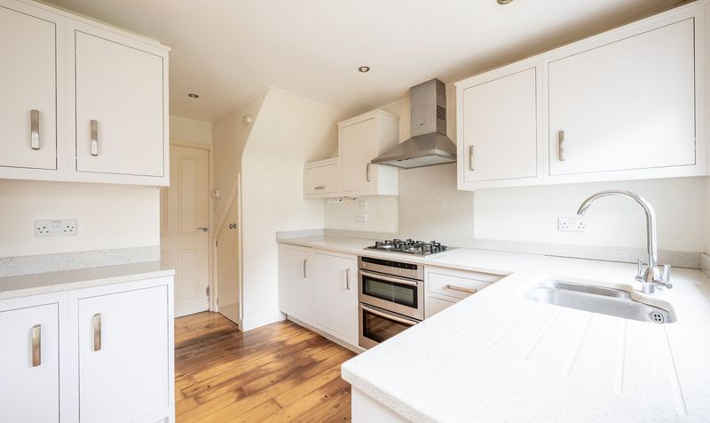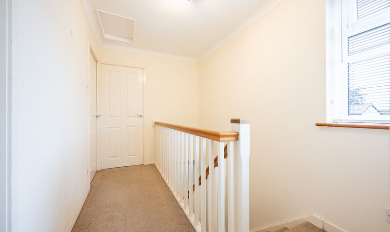 The first floor comprises three bedrooms, including two generous doubles and a third single, which could easily be used as a nursery, guest room, or study. The principal bedroom benefits from modern built-in wardrobes, providing excellent storage without compromising on space. Serving the bedrooms is a fresh and contemporary family bathroom, fitted with a full white suite, stylish tiling, and useful vanity storage, creating a smart and practical space for everyday living.