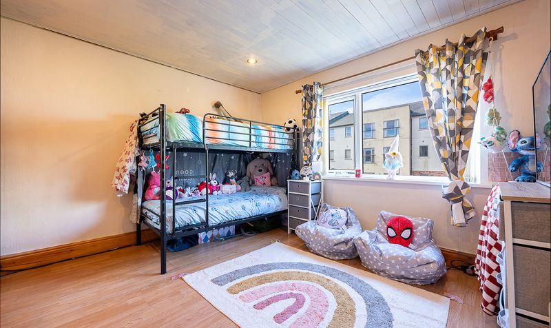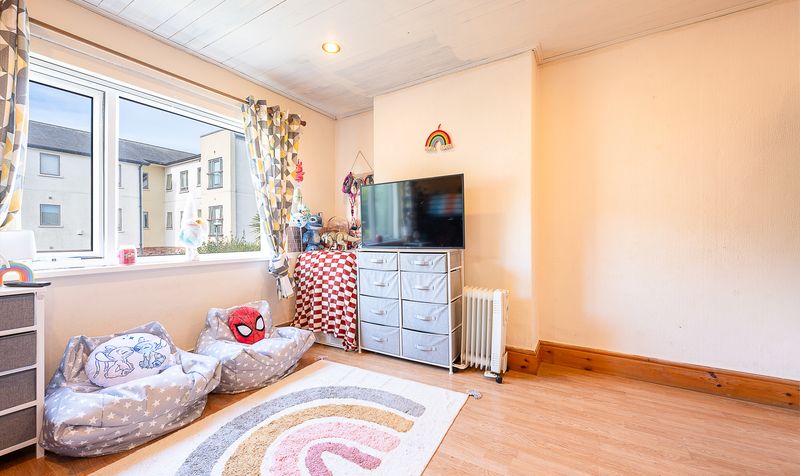 To the first floor, the property offers two well-proportioned bedrooms. The main bedroom is a comfortable double room, tastefully presented and offering ample space for freestanding bedroom furniture. The second bedroom is a generous single, currently arranged as a child’s bedroom, and would also lend itself well to use as a guest room, home office or dressing room.