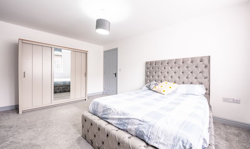 The apartment offers two well-presented bedrooms, both finished in neutral tones with soft carpeting. The main bedroom is a generous double room with plenty of space for wardrobes and additional furnishings, while the second bedroom is ideal as a guest room, nursery or home office.