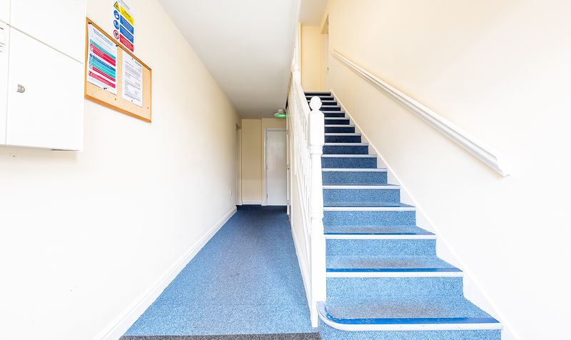 Upon entering the building, you are welcomed into a clean and well-kept communal hallway, leading through to the apartment itself. Inside, the accommodation is arranged around a central entrance hall, creating an easy and practical flow between each room.
