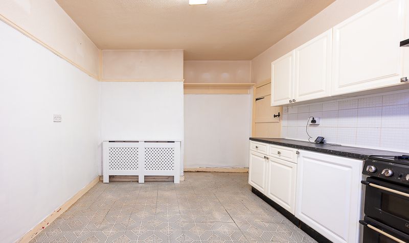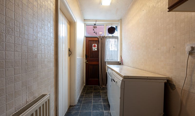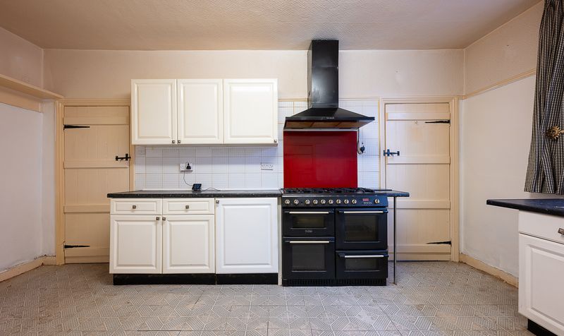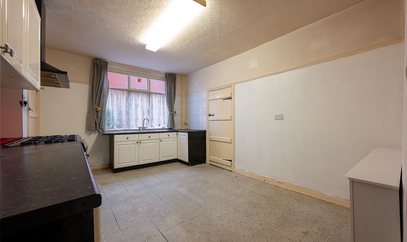 To the rear, the kitchen offers a generous footprint and excellent potential to become a stunning modern family space. Currently fitted with a range-style cooker, and with the added benefit of a dishwasher, washing machine and dryer all included within the sale, the space is immediately functional while offering clear scope for enhancement. Adjoining the kitchen is a separate utility room, providing valuable additional space for laundry and storage, complete with a traditional ceiling-mounted drying rack, an authentic feature rarely found in modern homes.