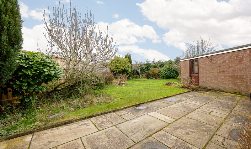 Externally, the rear garden offers a lovely private setting with a paved patio area perfect for outdoor seating and dining, leading onto a generous lawn bordered by mature shrubs and trees. The detached brick outbuilding and garage provide excellent additional storage.