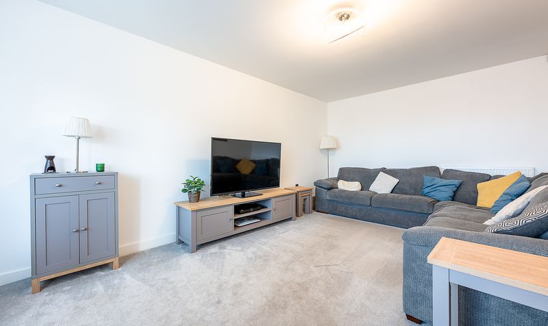 To the front of the property sits the generously proportioned lounge, a modern and stylish reception room that offers an excellent sense of space. Finished with plush carpeting and flooded with natural light from a large front-facing window, this room provides a comfortable yet contemporary setting, perfect for relaxing as a family or entertaining guests. Its generous proportions allow for a variety of furniture arrangements, creating a versatile and inviting living area.