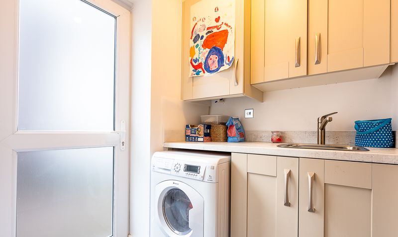 Adjoining the kitchen is a well-appointed utility room, providing additional storage and space for appliances, along with its own external door offering convenient side access. Also on the ground floor is a snug/study, currently used as a comfortable additional living space, ideal for quiet relaxation, reading or working from home, offering valuable flexibility to suit modern family life.