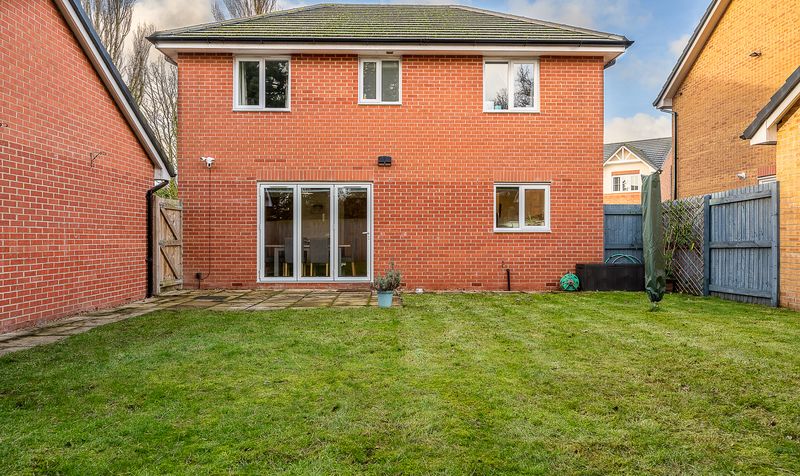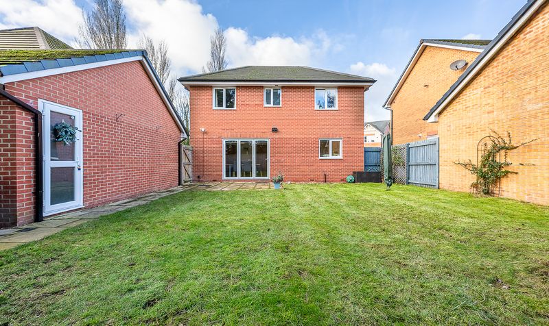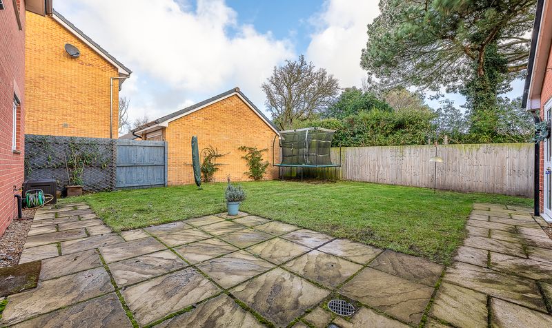 Externally, the property continues to offer excellent space. To the front, there is a neatly maintained garden and driveway providing off-road parking, along with access to the detached garage. The rear garden is a particular highlight, offering a generous and enclosed outdoor space ideal for families. A paved patio area sits directly outside the dining doors, perfect for outdoor seating and entertaining, while the main lawn provides ample space for children to play. The garden enjoys a good degree of privacy and also benefits from access to the detached garage.
