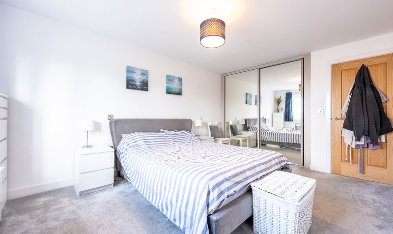 The first floor continues to impress, with a spacious landing leading to four well-proportioned bedrooms. The main bedroom is a generous double, beautifully presented and benefitting from fitted mirrored wardrobes that enhance both storage and light. This room also enjoys the luxury of a stylish en-suite shower room, finished with contemporary tiling, a walk-in shower, WC and wash basin, creating a calm and private retreat.