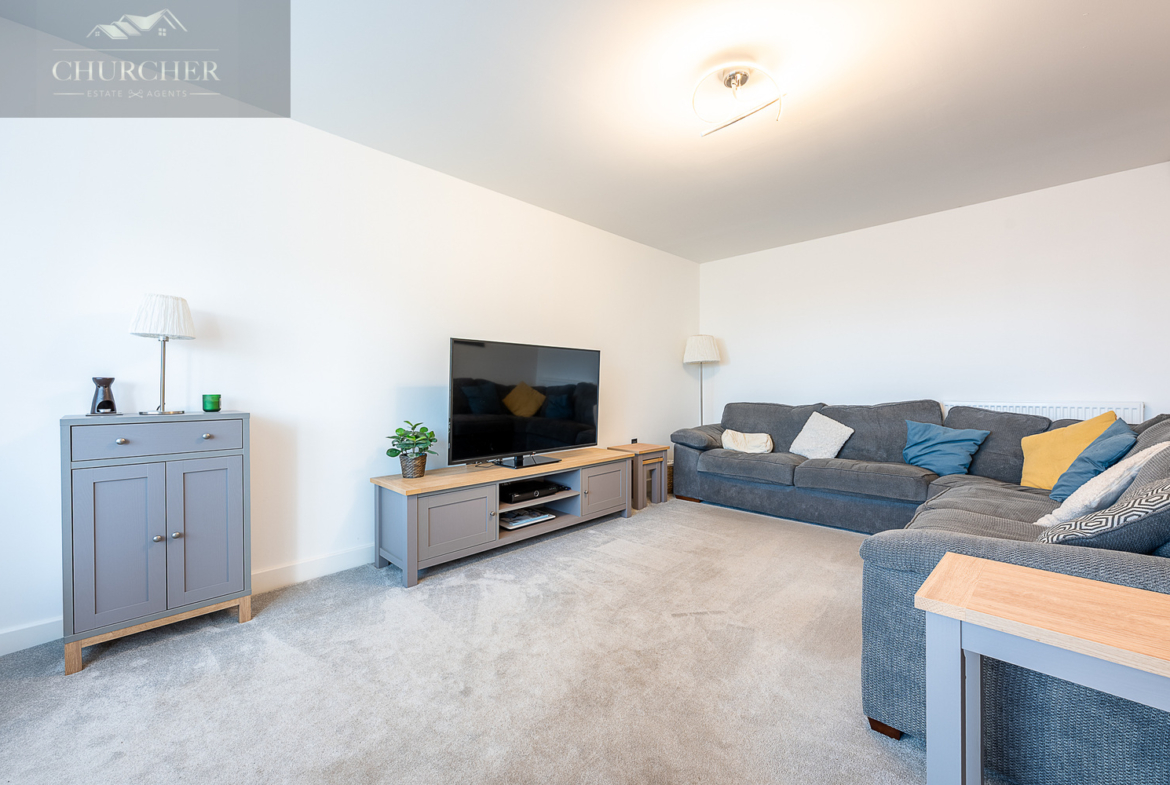 To the front of the property sits the generously proportioned lounge, a modern and stylish reception room that offers an excellent sense of space. Finished with plush carpeting and flooded with natural light from a large front-facing window, this room provides a comfortable yet contemporary setting, perfect for relaxing as a family or entertaining guests. Its generous proportions allow for a variety of furniture arrangements, creating a versatile and inviting living area.