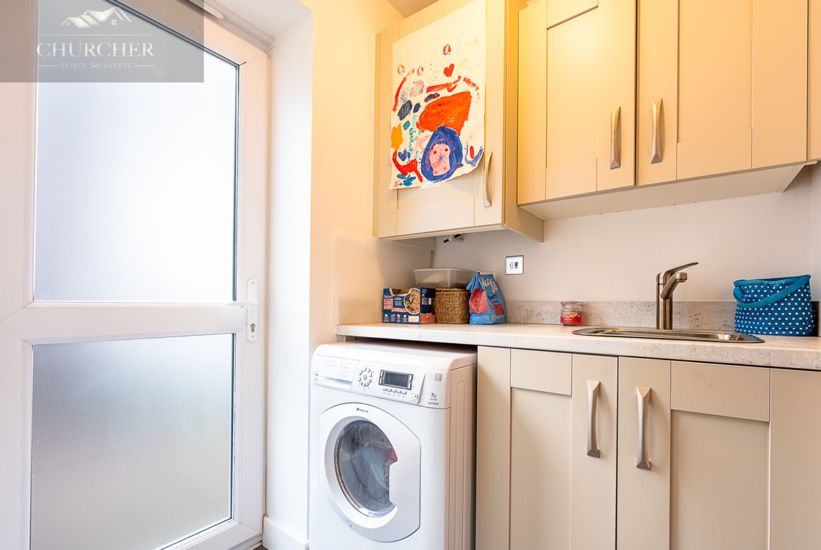 Adjoining the kitchen is a well-appointed utility room, providing additional storage and space for appliances, along with its own external door offering convenient side access. Also on the ground floor is a snug/study, currently used as a comfortable additional living space, ideal for quiet relaxation, reading or working from home, offering valuable flexibility to suit modern family life.