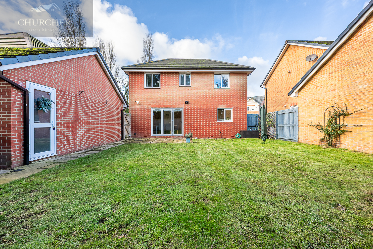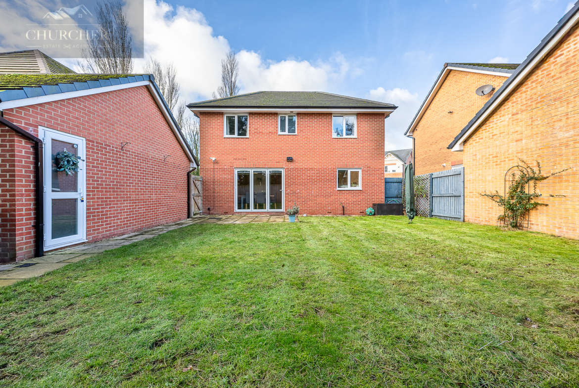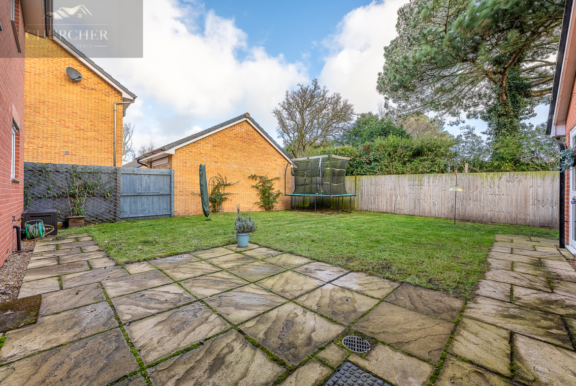 Externally, the property continues to offer excellent space. To the front, there is a neatly maintained garden and driveway providing off-road parking, along with access to the detached garage. The rear garden is a particular highlight, offering a generous and enclosed outdoor space ideal for families. A paved patio area sits directly outside the dining doors, perfect for outdoor seating and entertaining, while the main lawn provides ample space for children to play. The garden enjoys a good degree of privacy and also benefits from access to the detached garage.