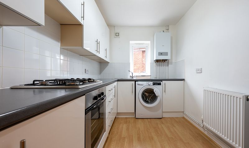 The kitchen is well-appointed with a range of modern wall and base units, complemented by contrasting work surfaces and tiled splashbacks. There is space for appliances, along with a practical layout that makes it ideal for day-to-day use.