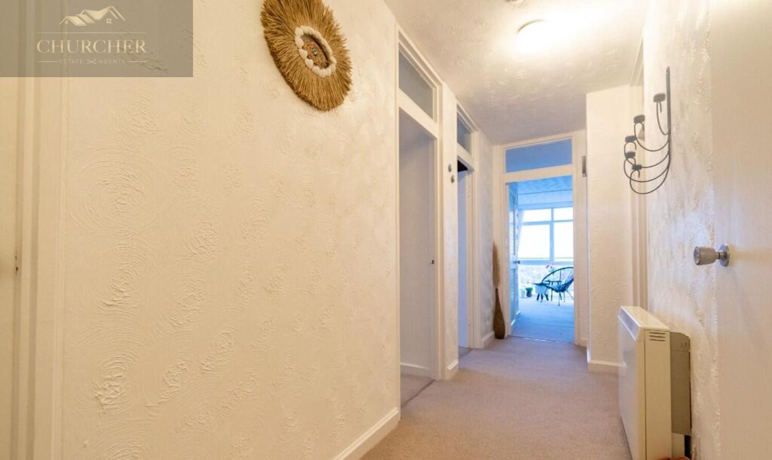 Upon entering through the front door, you are welcomed into a bright and airy entrance hallway, allowing plenty of natural light to flow through. The generously sized lounge is a fantastic space for relaxing and entertaining, featuring neutral décor and two large windows that fill the room with natural light. A private balcony is accessed from the living room, offering the perfect spot to enjoy fresh sea air and scenic views. The kitchen, fitted with neutral matching wall and base units and integrated appliances, is ready for an update to suit your personal style.