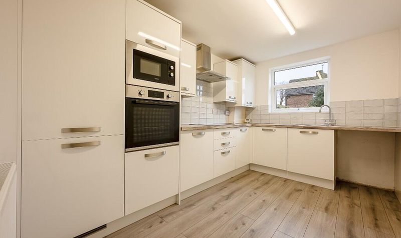 To the rear, the modern fitted kitchen provides ample storage and generous worktop space, ideal for everyday cooking. The layout is practical and well designed, with a clean contemporary finish and room for dining if desired.