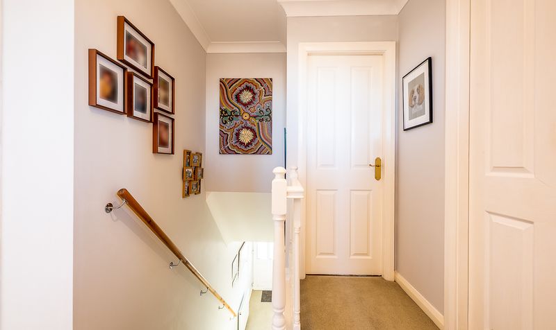 The first-floor landing is bright and airy, with doors leading to four well-proportioned bedrooms and the family bathroom. The main bedroom is a generous double room, tastefully decorated and enjoying a calm outlook, along with the added benefit of a modern en-suite shower room fitted with a contemporary suite.