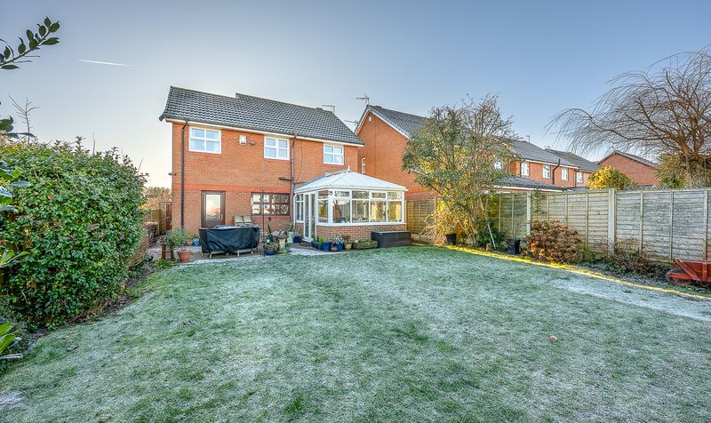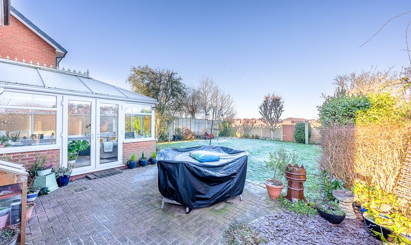 Externally, the rear garden offers a pleasant and private outdoor space. A paved patio area sits directly off the conservatory, providing an ideal spot for outdoor seating and entertaining, while the lawn beyond offers space for relaxation or play. Established boundaries and planting provide a good degree of privacy, creating a calm and enjoyable setting.
