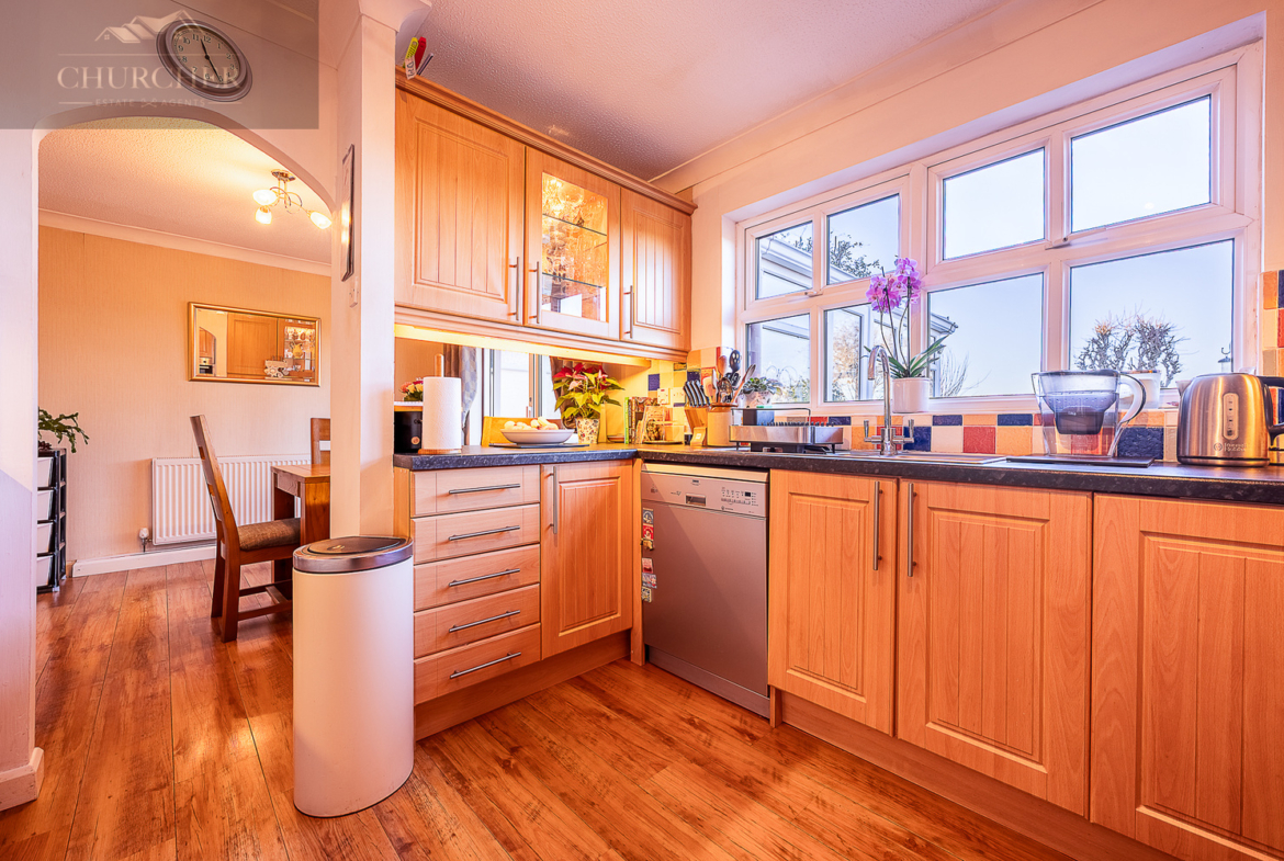 The dining room enjoys plenty of space for a family dining table and benefits from sliding patio doors that open directly into the conservatory. The conservatory is a lovely addition, flooded with natural light and offering views across the rear garden. With tiled flooring and direct access outside, it provides a versatile space suitable for use as a sitting area, garden room or additional entertaining space throughout much of the year.