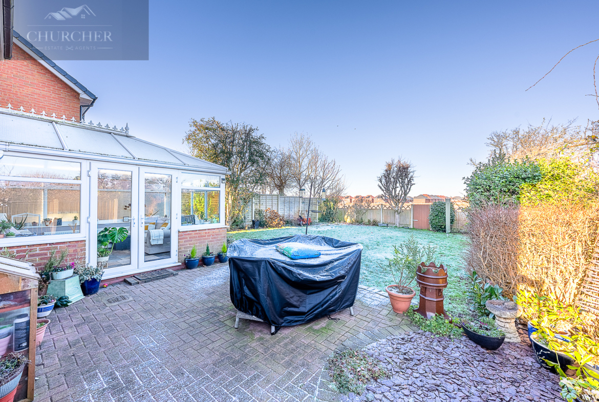Externally, the rear garden offers a pleasant and private outdoor space. A paved patio area sits directly off the conservatory, providing an ideal spot for outdoor seating and entertaining, while the lawn beyond offers space for relaxation or play. Established boundaries and planting provide a good degree of privacy, creating a calm and enjoyable setting.