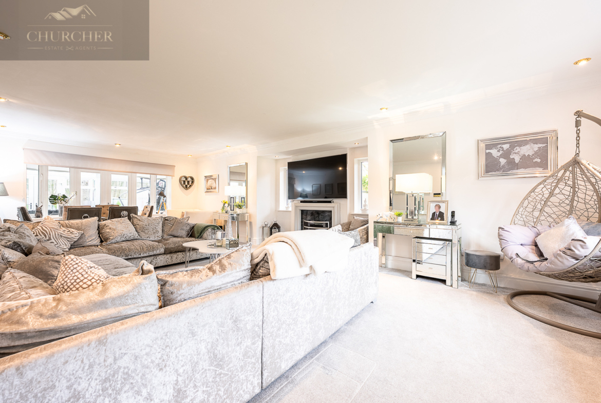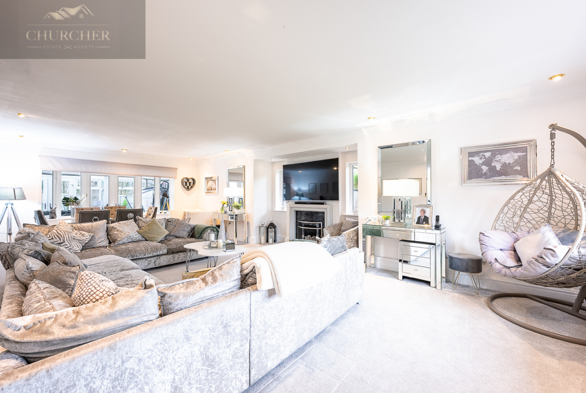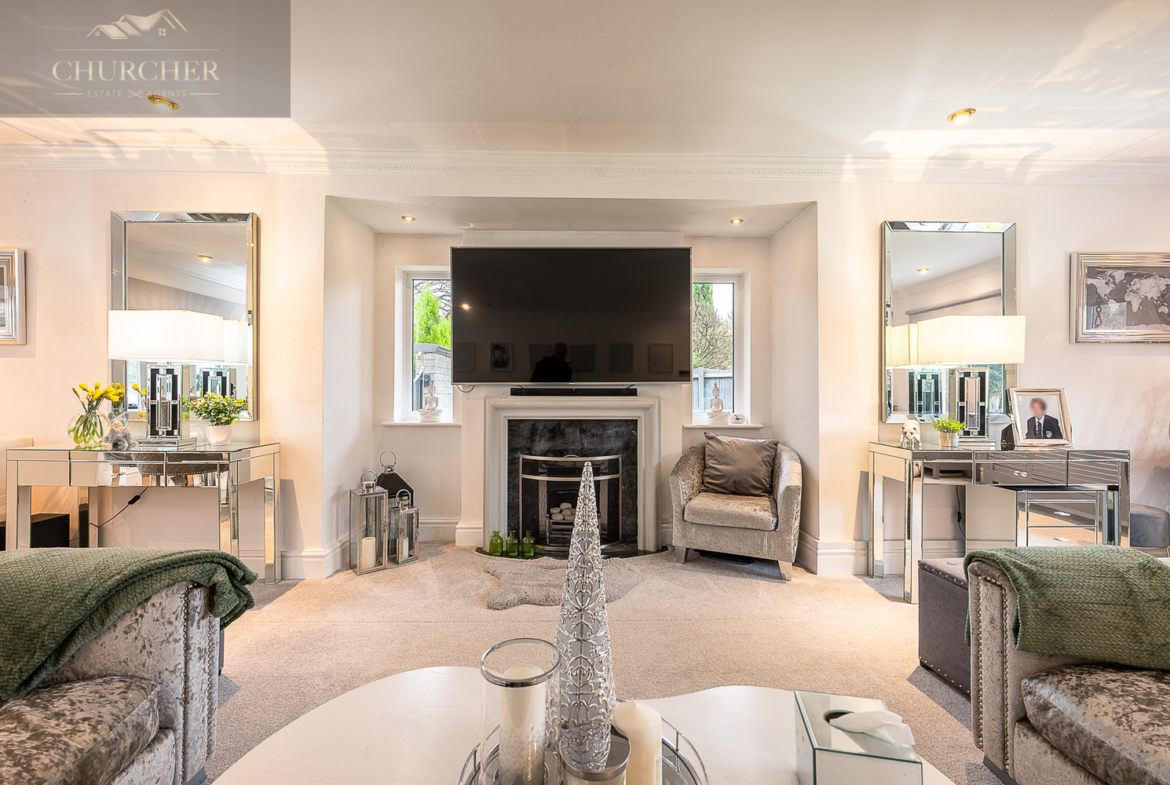 The main living room is beautifully proportioned and filled with natural light, offering a warm and inviting space centred around a feature fireplace. Neutral tones and quality finishes enhance the sense of comfort, making it ideal for both relaxed evenings and entertaining guests. A second sitting room/snug provides additional flexibility, perfect as a cosy retreat, media room or quiet reading space.