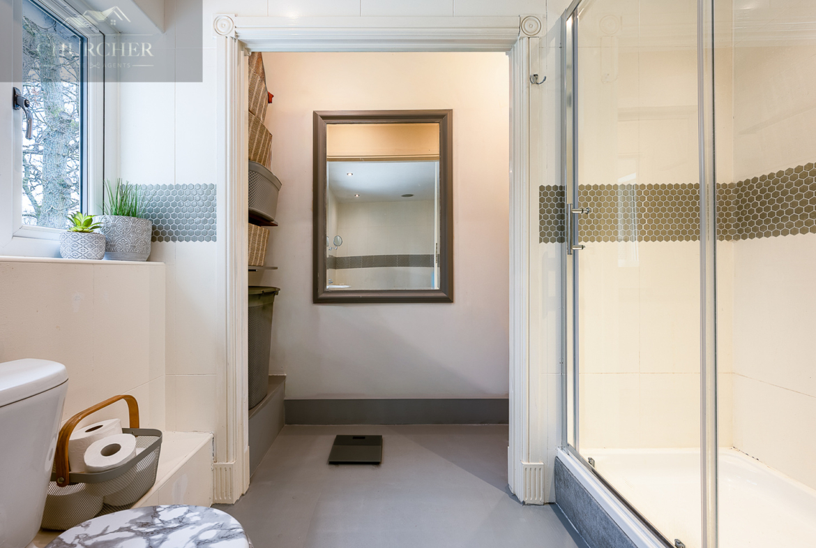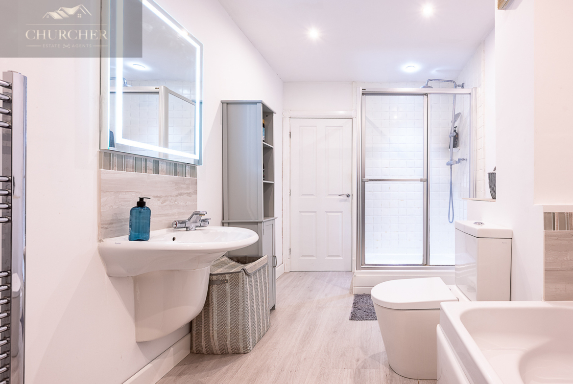 The family bathroom is spacious and beautifully appointed, offering a stylish and contemporary space designed to meet the needs of modern family life. Featuring both a separate bath and a freestanding shower enclosure, the room provides excellent flexibility for busy mornings or relaxing evenings. Elegant tiling, quality sanitaryware and generous proportions complete the space, ensuring comfort and practicality in equal measure.