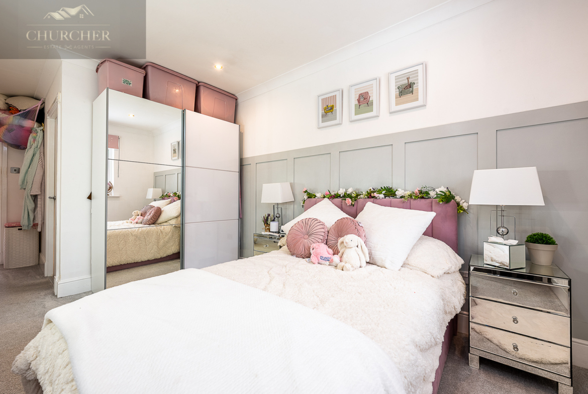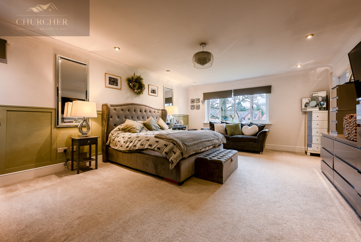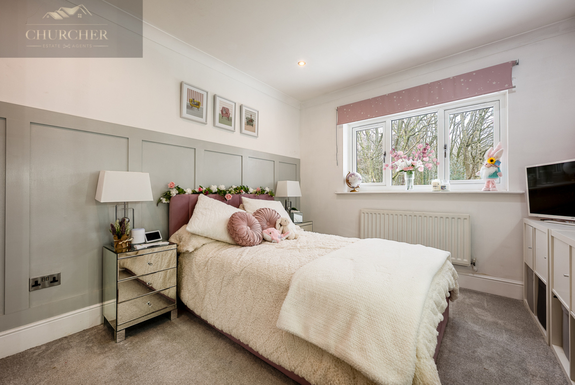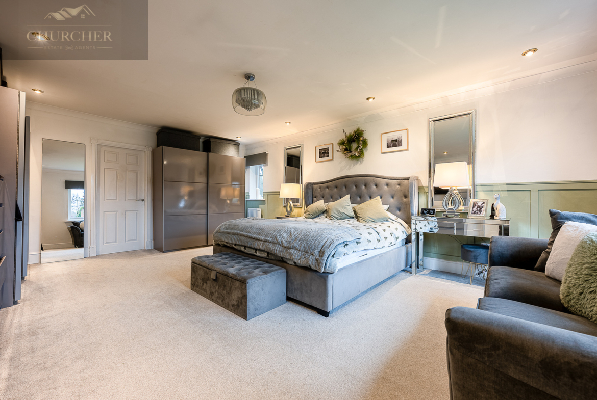 A second double bedroom also enjoys en-suite accommodation, making it ideal for guests or older family members. The remaining three bedrooms are all thoughtfully decorated, generously sized and highly versatile, suitable for children, guests or additional workspace as required.