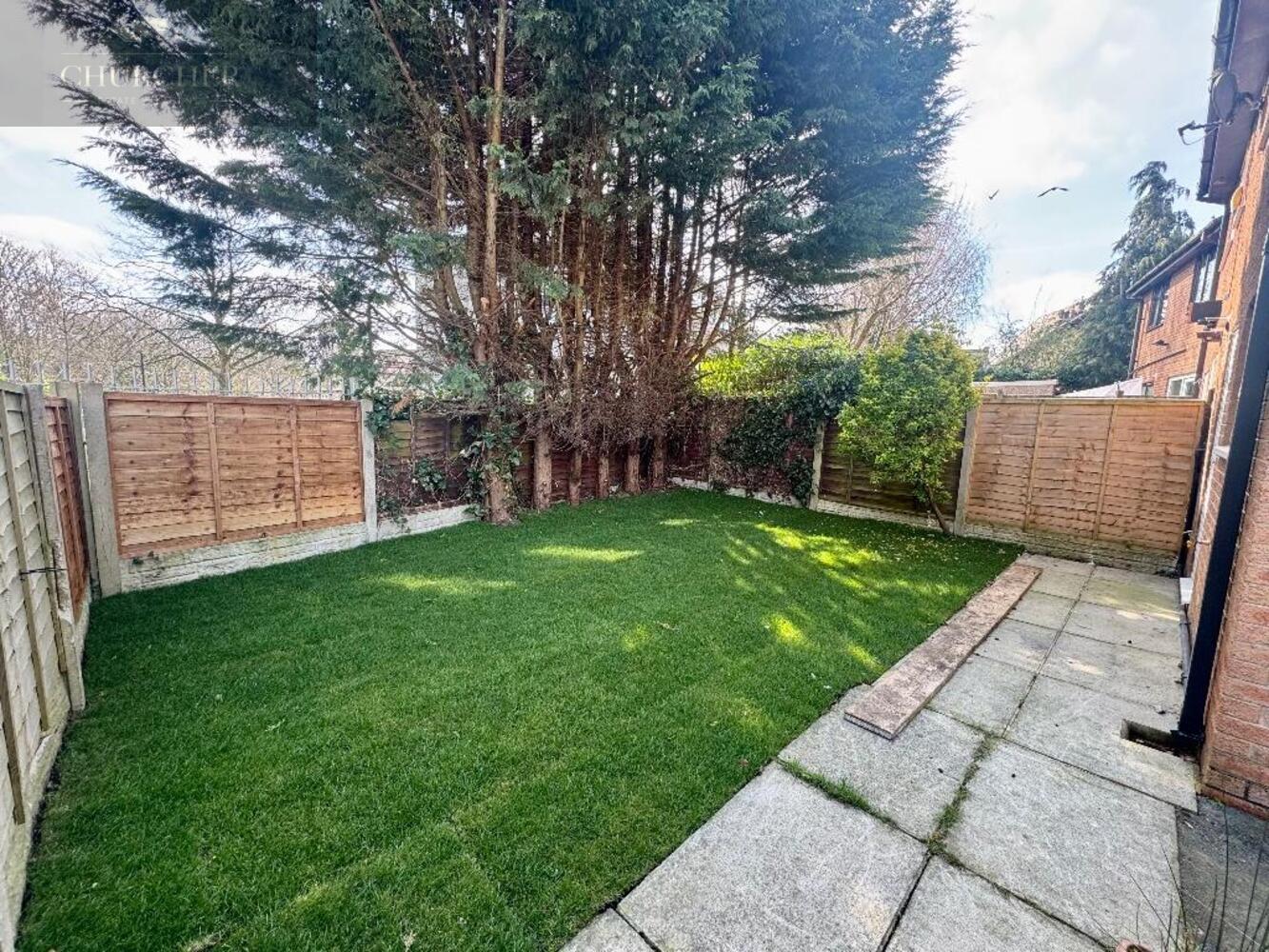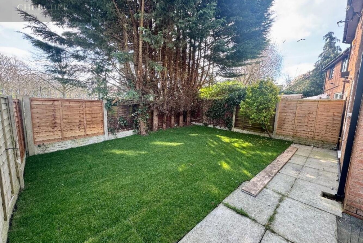Externally, the property continues to impress. The front of the home offers a driveway, a paved patio area, and a well-maintained lawn, with side access leading to the private rear garden. The rear garden is a true highlight, featuring a paved patio, a lawn, and mature trees, all enclosed by fencing to provide a secluded and peaceful retreat, perfect for relaxing or entertaining.