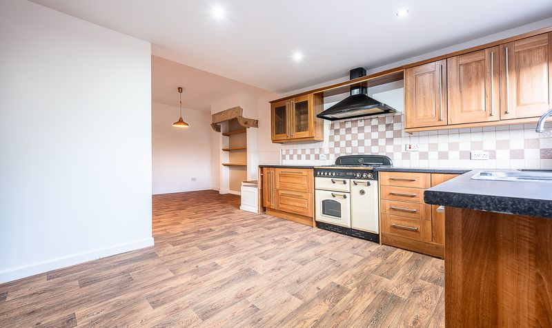 The kitchen itself stretches across the full width of the house and offers an abundance of storage, worktop space and potential. Fitted with traditional-style units and complemented by a striking range cooker, the room has a warm and homely feel. Windows overlooking the garden frame a lovely view, while the rear door provides direct access outside. The adjoining utility room and WC are a fantastic bonus, offering additional workspace, storage and practicality – perfect for families or those needing extra room for laundry and household organisation.
