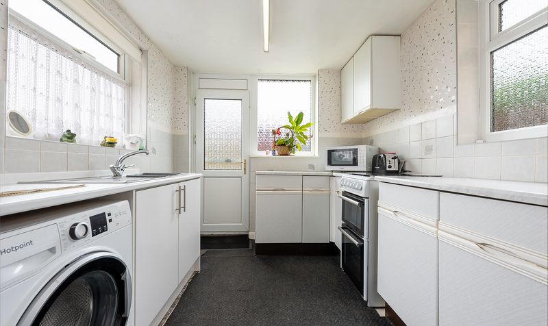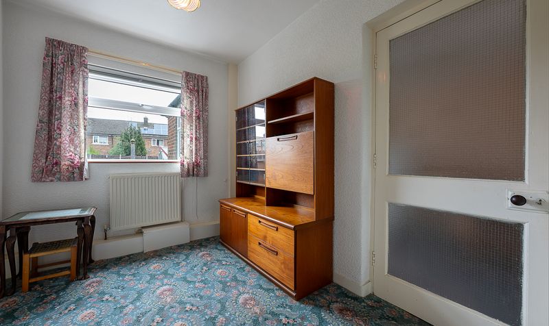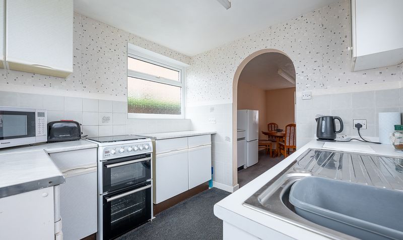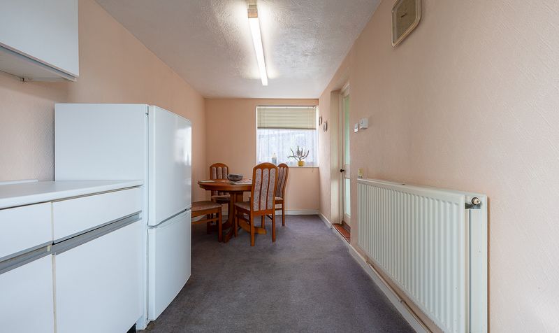 To the rear of the property, the kitchen is fitted with a range of units and provides a practical layout with views over the garden. An open archway leads through to a separate kitchen/breakfast area, offering additional storage and space for casual dining. This in turn flows into a dedicated dining room, a versatile space ideal for entertaining or family meals, with direct access to the rear of the property.