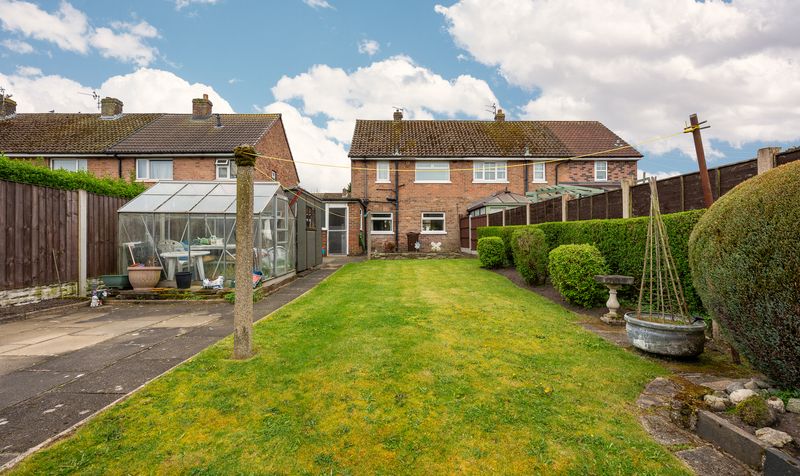 Externally to the rear, the property boasts a beautifully maintained garden, predominantly laid to lawn and bordered by mature hedging and planting. There is a paved patio area ideal for outdoor seating, along with a greenhouse and garden shed, making it a perfect space for both relaxing and gardening enthusiasts.