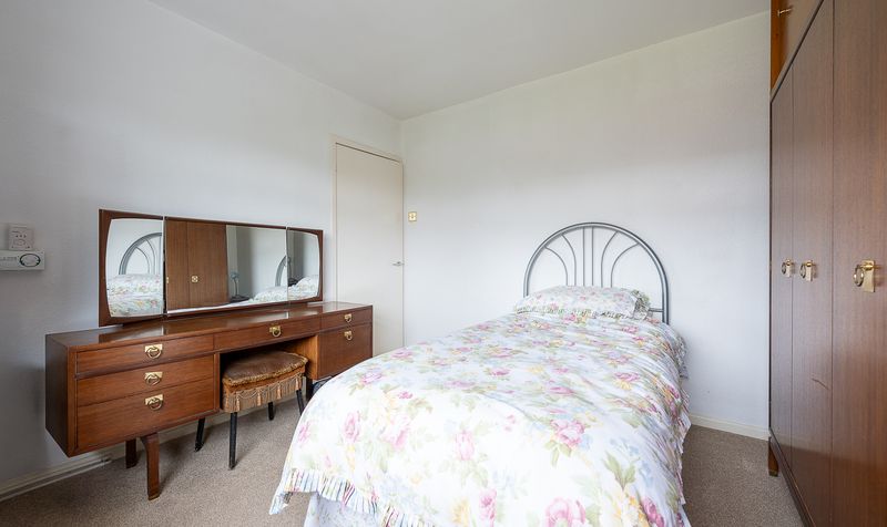 Upstairs, the first floor offers two well-proportioned bedrooms. The main bedroom is a generous double room featuring fitted wardrobes and dual windows, allowing for plenty of natural light and providing a comfortable and relaxing retreat. The second bedroom is also a good-sized room, suitable for use as a guest bedroom, home office or nursery.