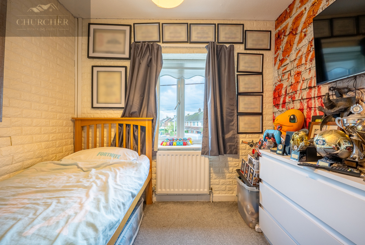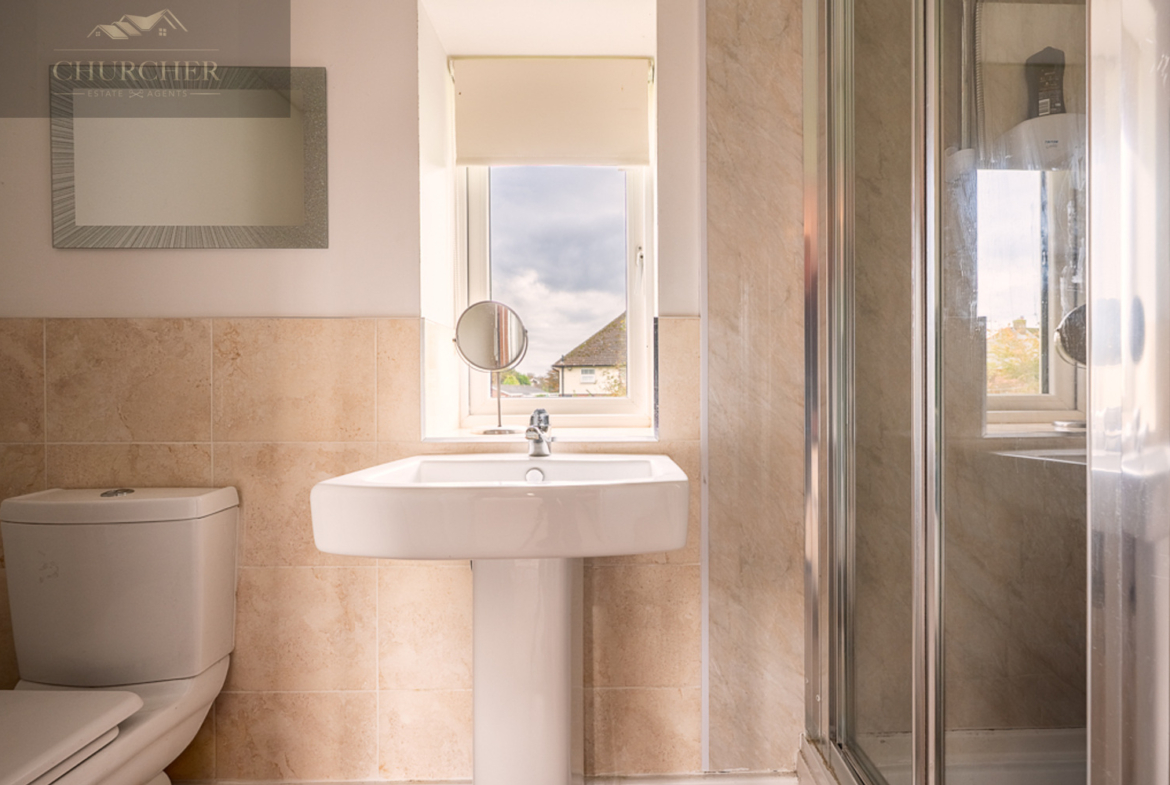 Upstairs, the property continues to impress with four well-proportioned bedrooms, all designed with comfort and space in mind. The main bedroom offers a peaceful retreat, tastefully decorated and enjoying plenty of natural light from the rear aspect window. It also benefits from its own modern en-suite shower room, featuring a tiled finish, chrome fittings, and a sleek corner shower enclosure. The remaining bedrooms are all excellent in size – far larger than you might expect – providing ample space for children, guests, or working from home. Each has its own individual charm and could easily accommodate double beds and furniture while still offering room to move freely.