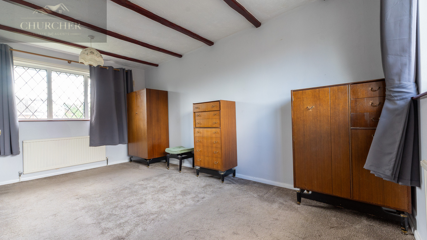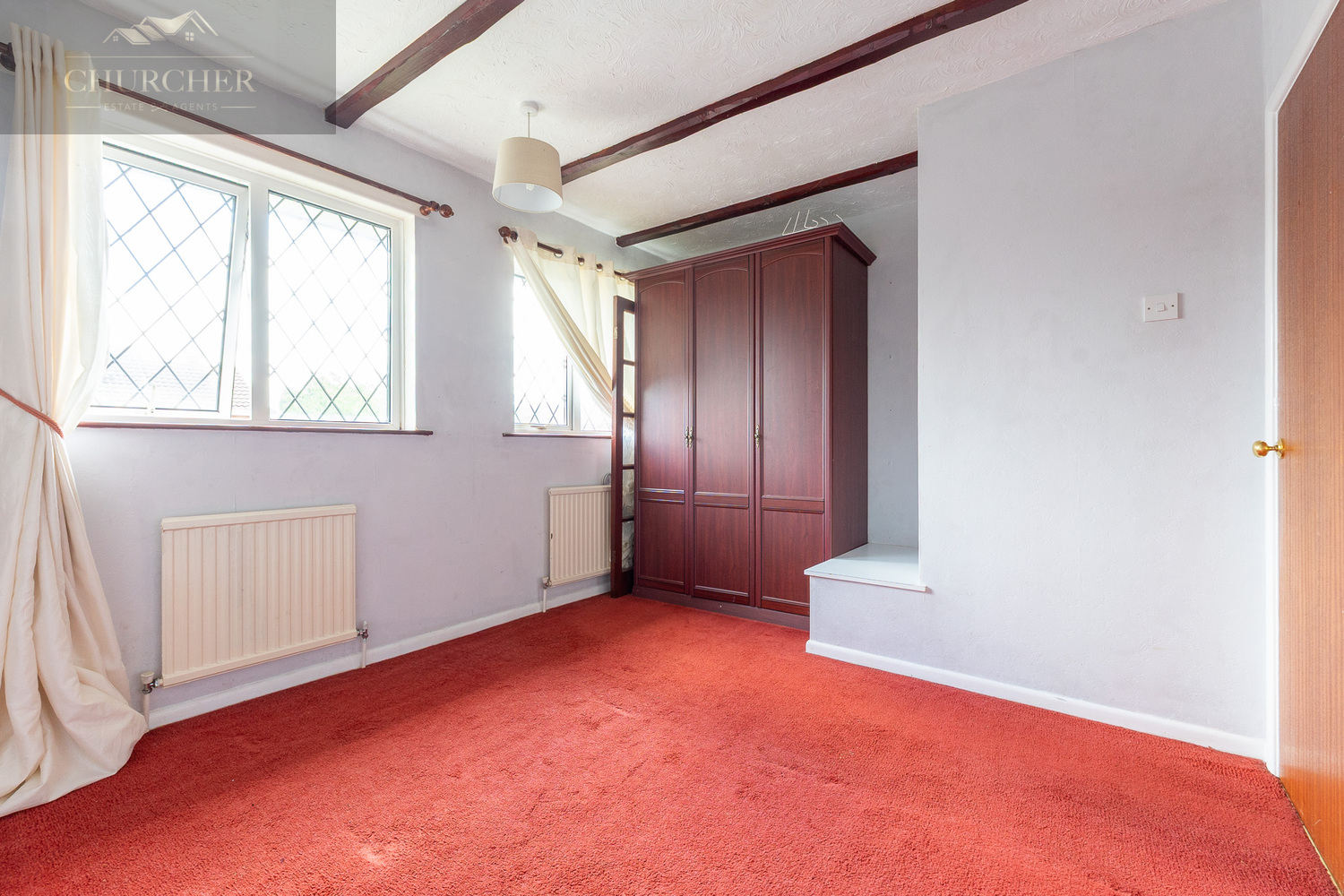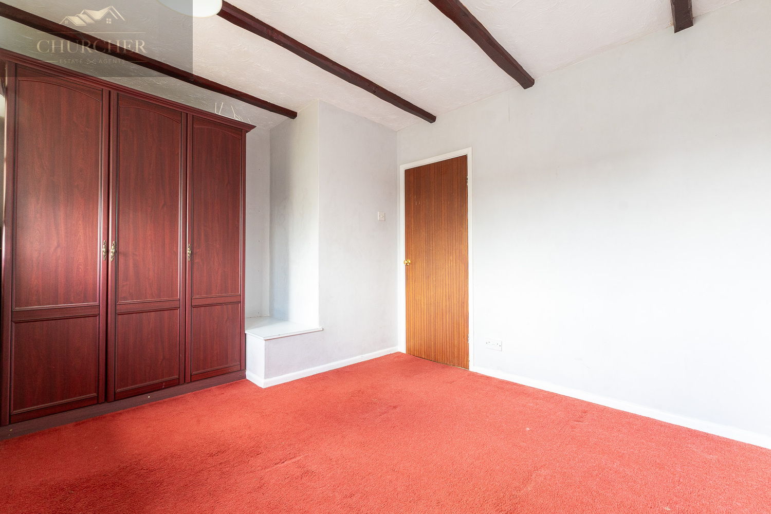 Upstairs, the property comprises two well-proportioned double bedrooms. The principal bedroom spans the full width of the house and benefits from dual aspect windows that flood the room with natural light. The second bedroom overlooks the rear garden and also provides ample space for furnishings. Both rooms retain the home’s character with exposed beams and traditional window detailing.