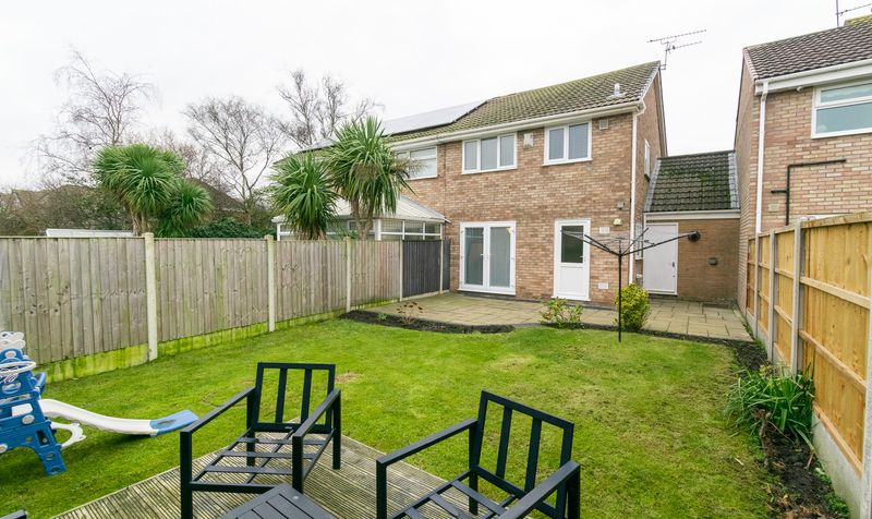 Externally, the rear garden provides a private outdoor haven, ideal for both families and entertaining. A generous paved patio offers the perfect spot for outdoor dining and summer seating, while the lawned garden beyond provides plenty of space for children to play. The garden is fully enclosed, offering a safe and peaceful environment, with a lovely open aspect back towards the house.
