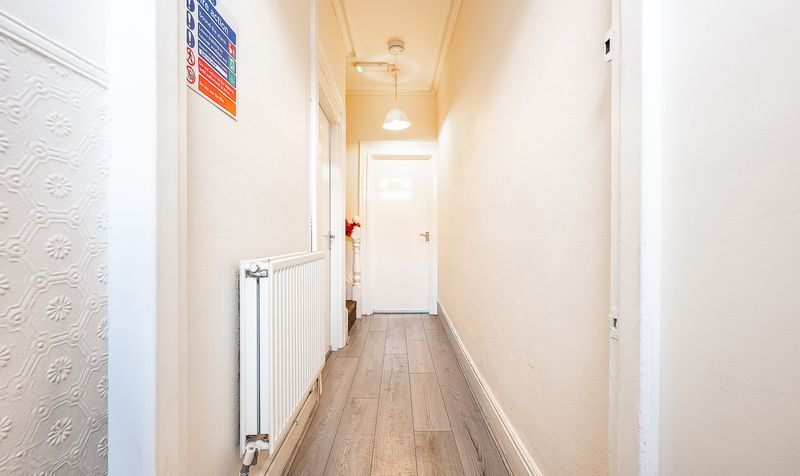 Stepping through the front door, you are welcomed into a long entrance hallway which sets the tone for the home, featuring contemporary wood-effect flooring, neutral décor and a bright, airy feel that continues throughout. From here, the layout flows beautifully from front to rear, providing access to the main reception rooms as well as the staircase to the upper floors, offering a practical set up that works perfectly for shared occupancy and everyday living.