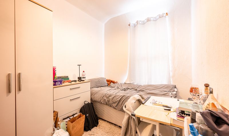 To the front of the property sits a spacious room which is currently used as a bedroom as part of the existing student accommodation, offering excellent proportions and a charming bay window that allows natural light to pour in. For buyers looking to return the home to a more traditional layout, this room would make a comfortable and inviting lounge or main reception room, perfect for relaxing and enjoying the bright, airy feel created by the large front-facing window.